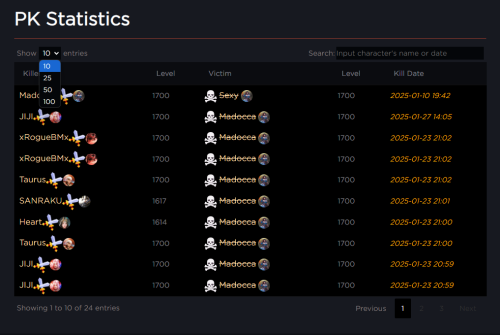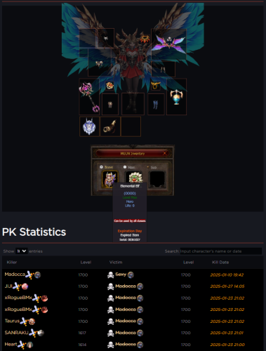 This Extended Character Information shows Pet, Muun, and PK Statistics
